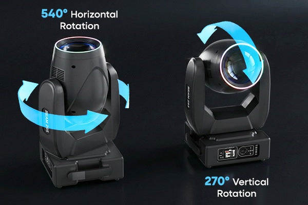 540° pan + 280° tilt with 16-bit resolution delivers fluid, silent, and accurate motion—ideal for synchronized beam chases, logo reveals, and dynamic stage programming.