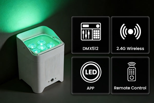 Absolutely. Perfect as a DJ uplight, they support DMX, wireless DMX, APP, and remote control—ideal event uplights for fast adjustments.